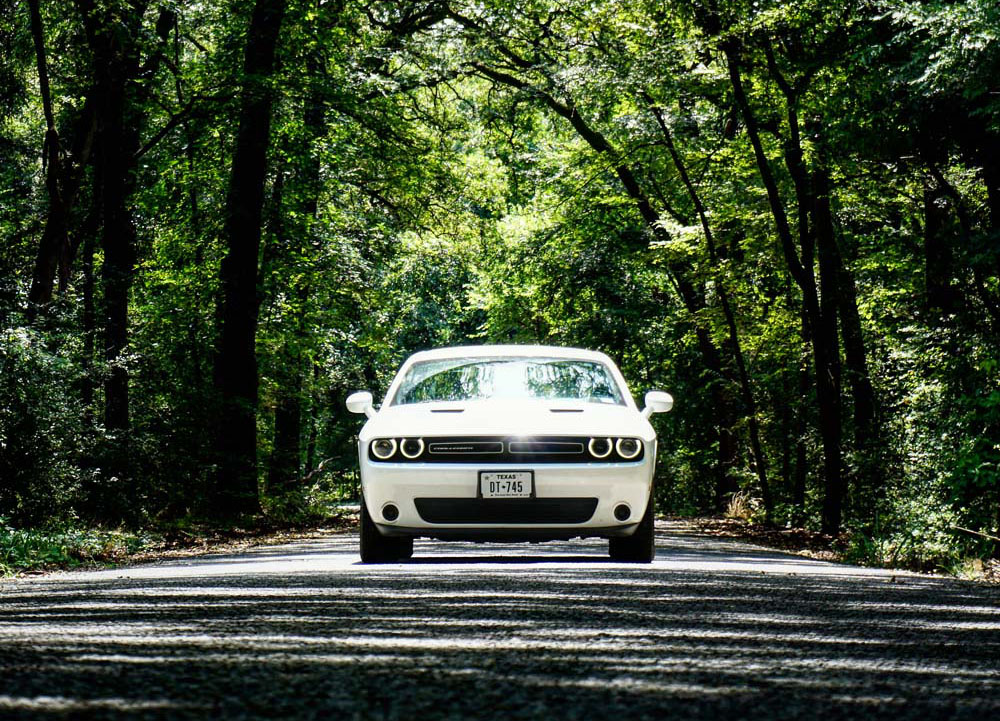 Street shot of a Dodge Challenger. There was just something slightly sinister about this Challenger lurking in the brush.